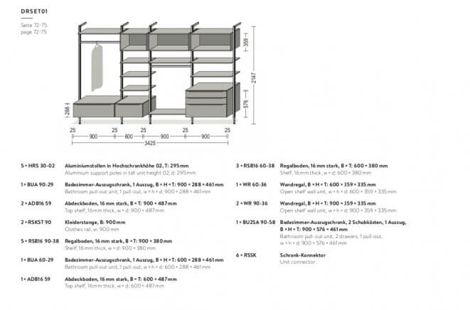 Stylové a flexibilní v jednom. Šuplíky, výsuvné šuplíky, tyč na ramínka, všechny tyto možnosti a spoustu místa na ukládání oblečení a doplňků vám nabízí regálový policový regálový systém. Navív může být ještě rozšířen přesně podle vašich přání.